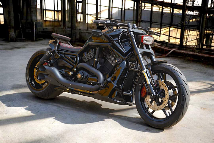 First of all, Fran Manen chose a Vrod Nightrod Special from the last year of production, a perfect base for this job, which also comes standard with an upside-down front suspension fork and a powerful 120 hp and 1250cc Revolution V-Twin engine.